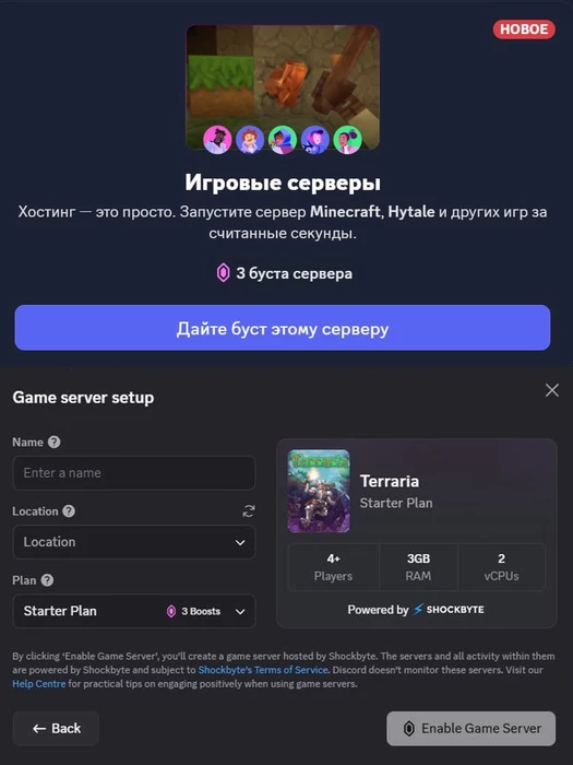 Discord запустил фичу Game Servers: серверные бусты превращаются в полноценные dedicated-серверы для популярных игр. Нужно всего три буста — выбираешь игру (Minecraft, Rust и другие), регион, настраиваешь и играешь. Для тяжёлых проектов с большим онлайном есть отдельные тарифы с кучей бустов. support. Подключаться просто: через Discord-приложение или по прямому IP. Фича уже разворачивается — на 15% серверов доступна, полное покрытие скоро.