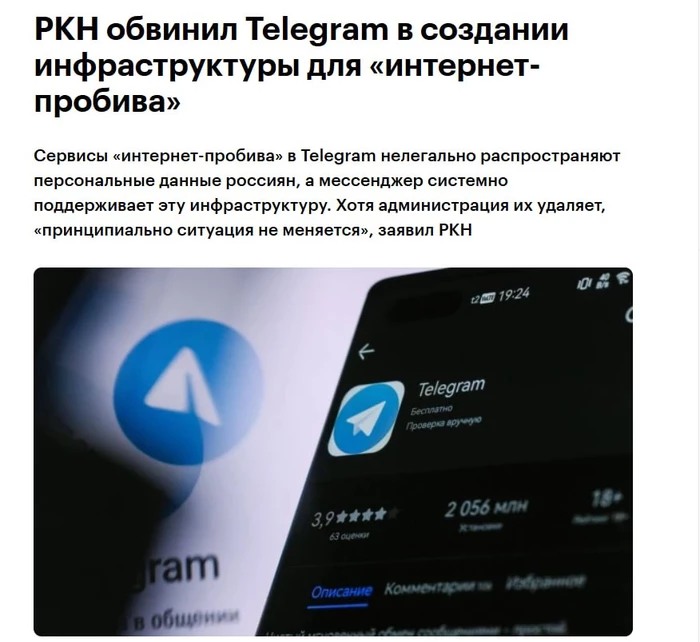 Роскомнадзор официально заявил: Telegram продолжает быть платформой, на которой работают тысячи ботов и каналов, продающих пробив по базам МВД, ФНС, ГИБДД, банков, операторов связи и других источников. С 2022 года РКН добился удаления тысяч таких сервисов, но они появляются заново буквально за часы. Ведомство считает, что мессенджер должен сам жёстко пресекать подобные проекты: блокировать их на уровне платформы, передавать данные админов правоохранителям и полностью перекрывать кислород.