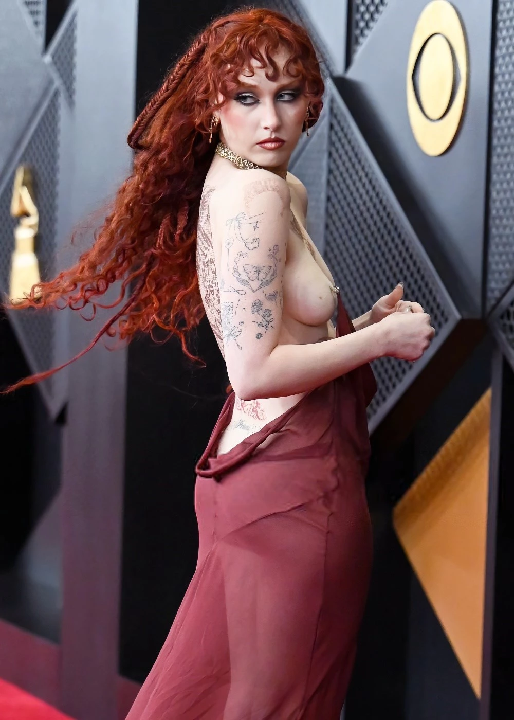 Певица Чаппелл Роан вышла на красную ковровую дорожку «Грэмми-2026» в прозрачном бордовом платье Mugler, которое буквально держится на пирсинге сосков. Это не шутка — наряд вдохновлён коллекцией 1998 года, но с протезными сосками, чтобы всё выглядело максимально провокационно. Роан скинула плащ и осталась почти голой, вызвав бурю в сети: фанаты кричат «королева смелости», хейтеры в шоке от такого обнажения. Сама певица хохочет над реакцией и говорит, что ничего сверхъестественного в образе нет — просто круто и странно.