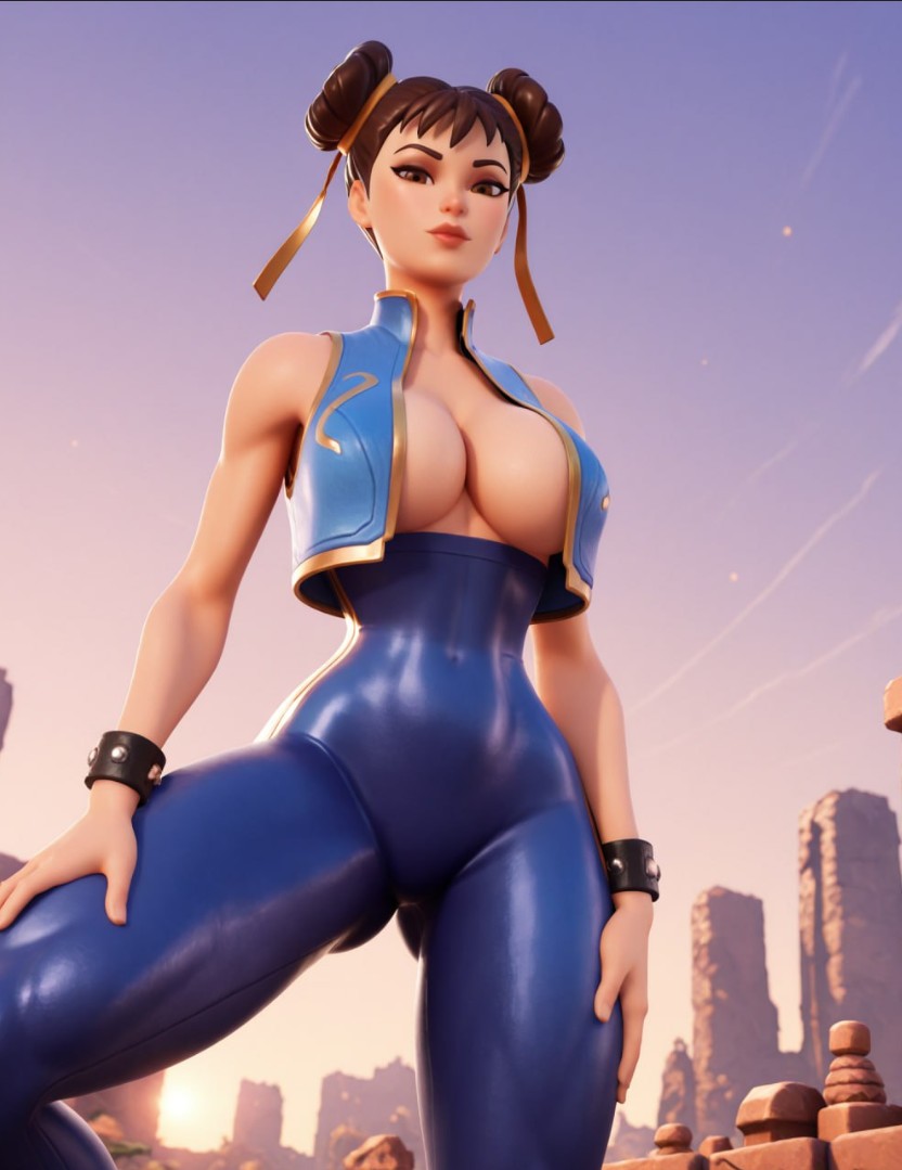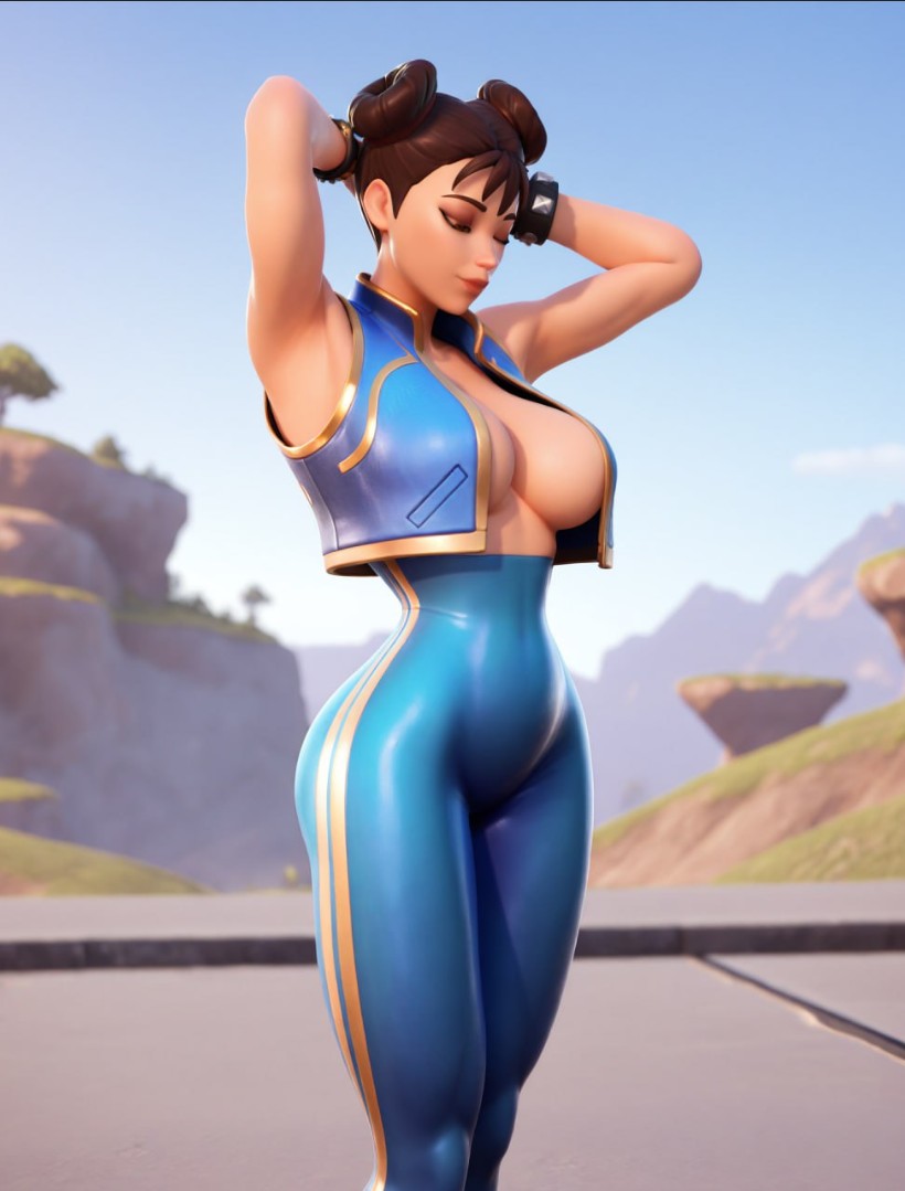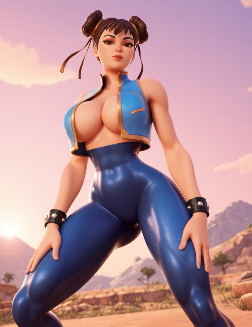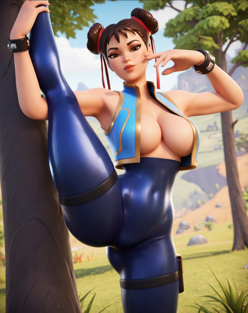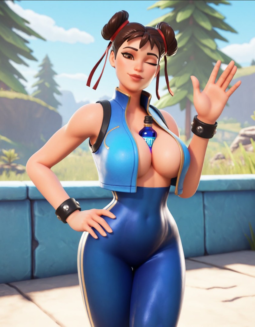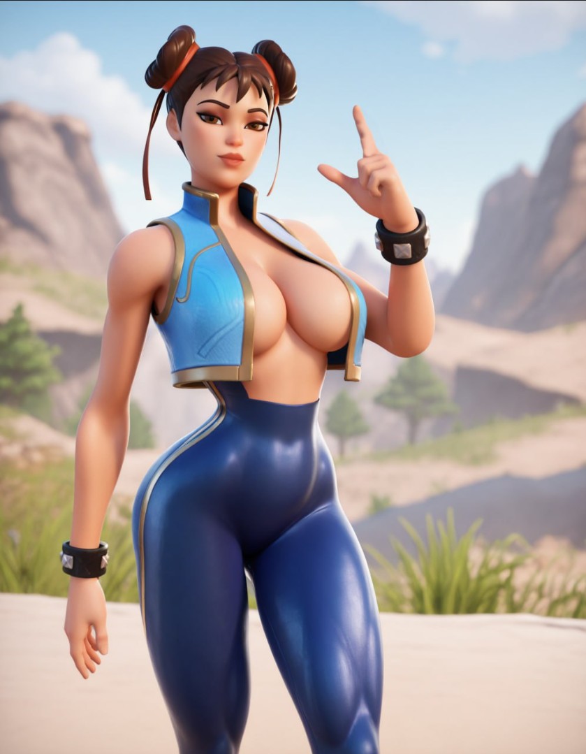 С помощью ИИ фанаты создают откровенные версии Чун-Ли из Fortnite — меняют позы, добавляют детали и делают её более взрослой. Такие кадры популярны в сети, но они не из официальной игры.