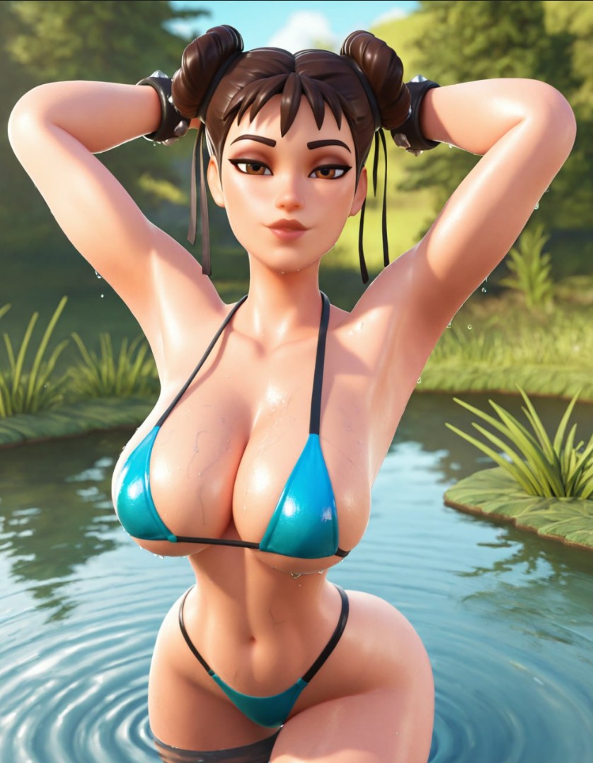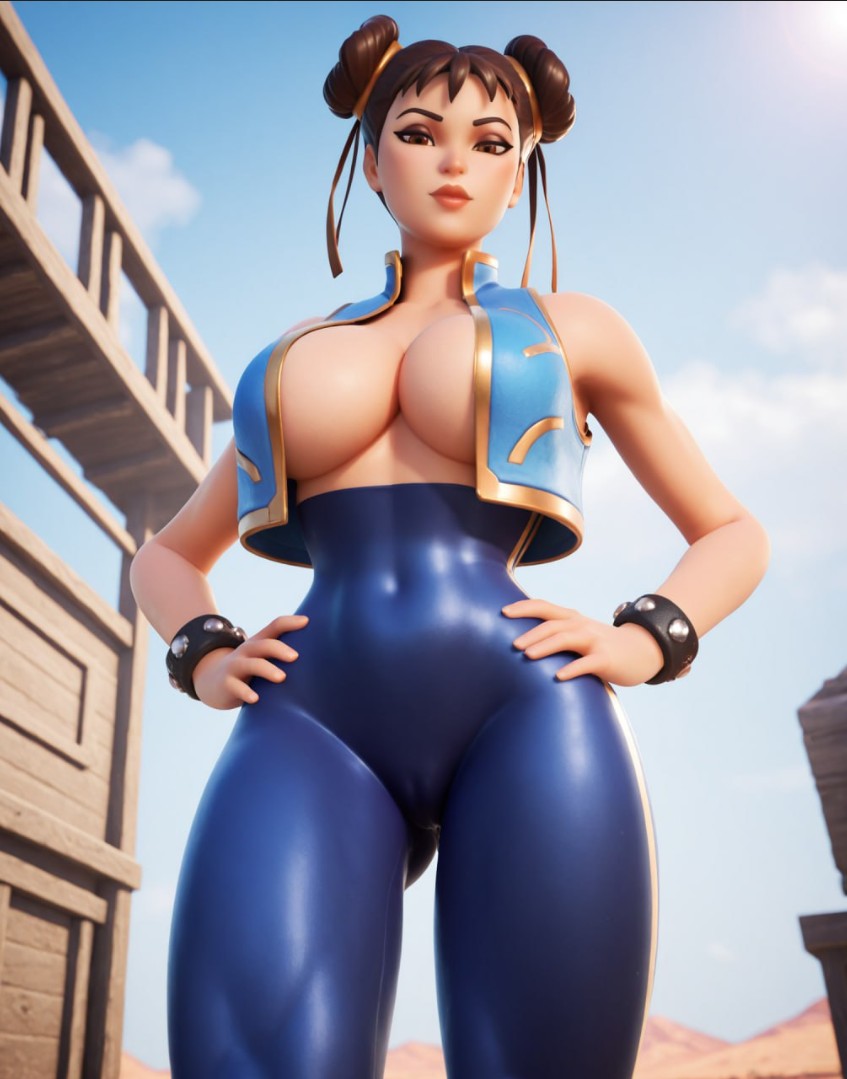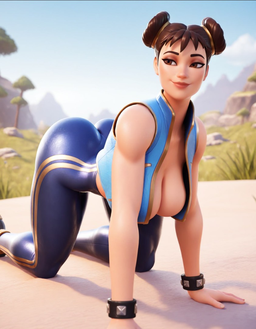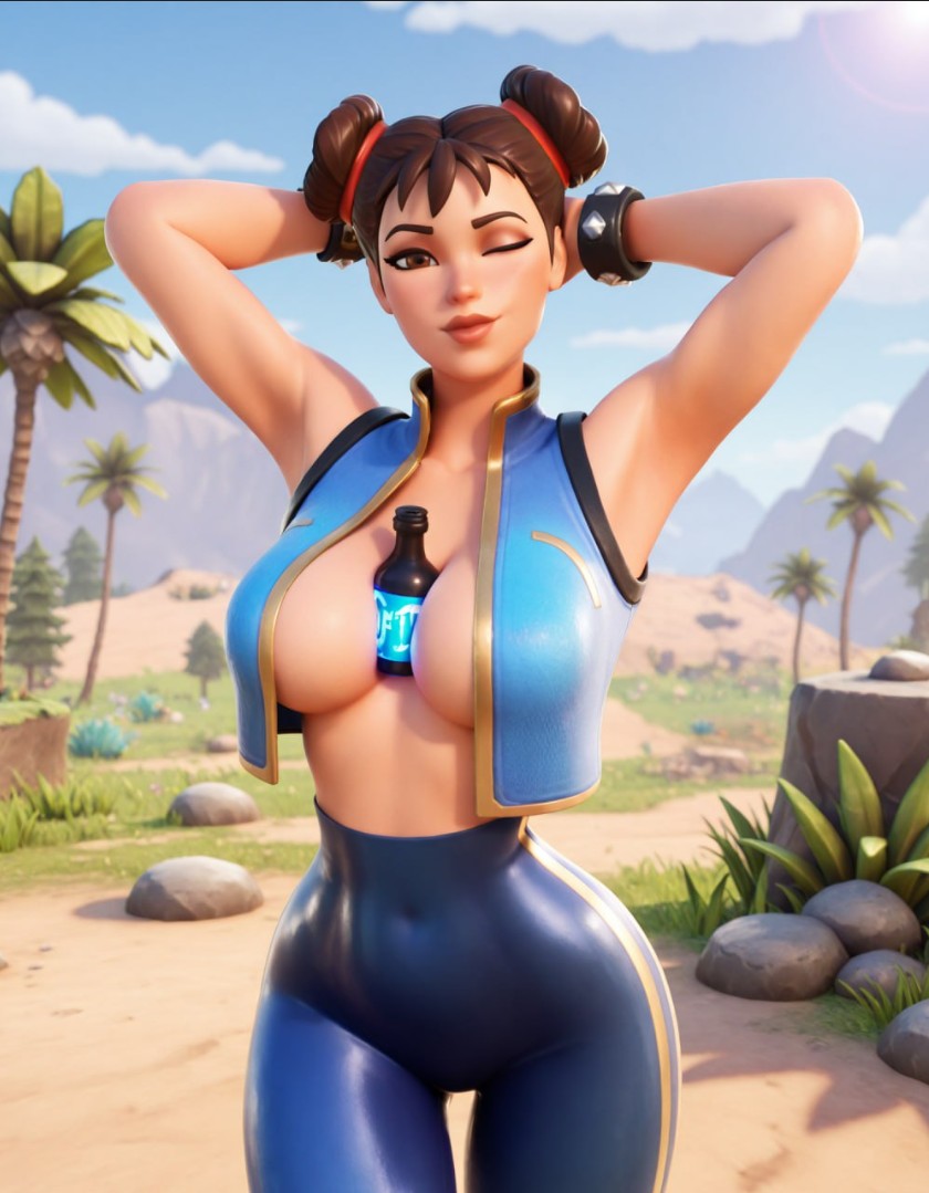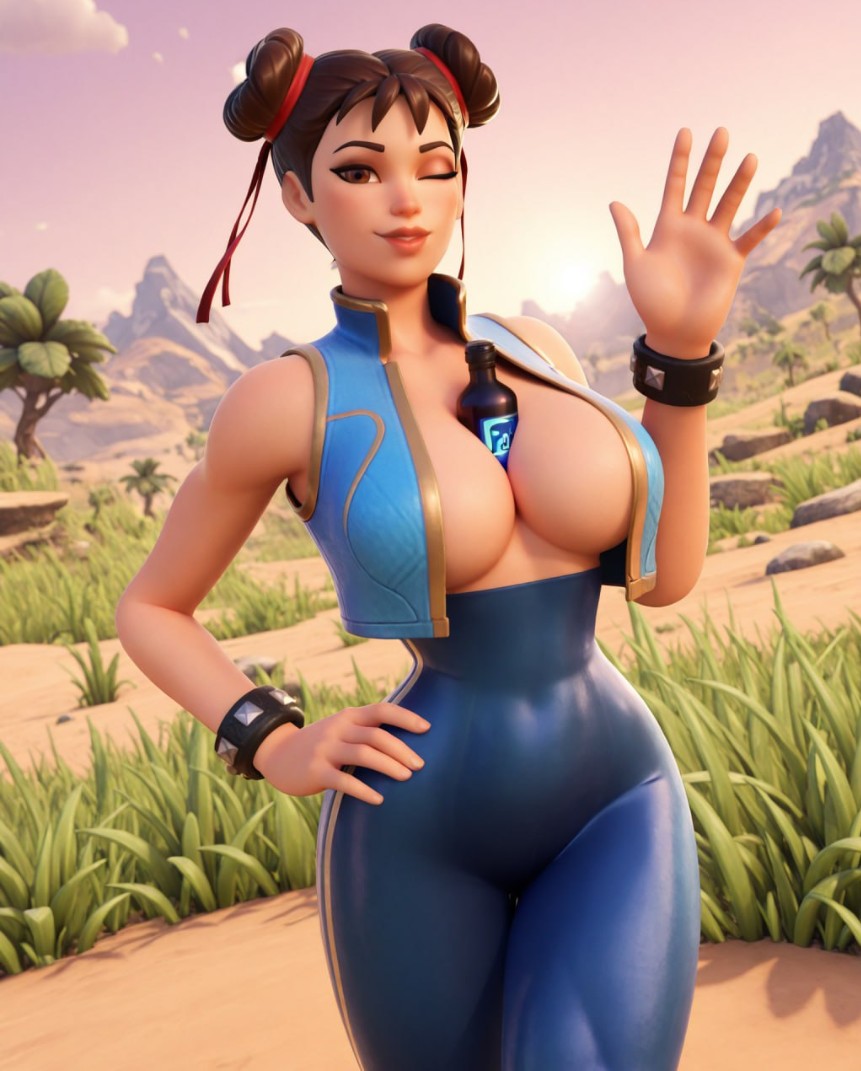 С помощью ИИ фанаты создают откровенные версии Чун-Ли из Fortnite — меняют позы, добавляют детали и делают её более взрослой. Такие кадры популярны в сети, но они не из официальной игры.
