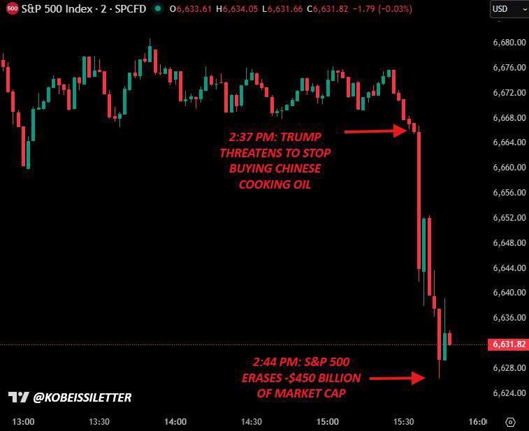 Резкое падение произошло после его слов о том, что США могут самостоятельно наладить производство растительного масла. Эксперты связывают обвал с опасениями торговой войны, так как Пекин отказался от закупок американской сои, что привело к угрозе со стороны Белого дома в ответ на эти действия.