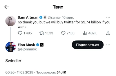 Заявка на покупку контрольного пакета уже подана. Сэм Альтман ответил встречным предложением: «Продай Twitter за $9 млрд». Финальное слово предстоит сказать совету директоров компании.