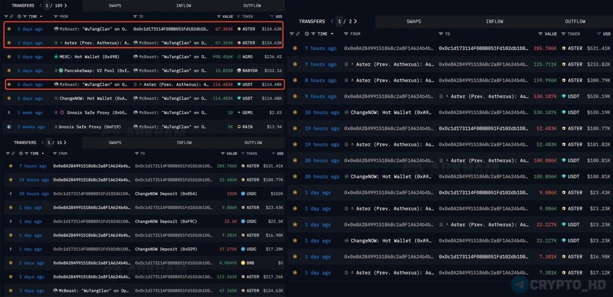 Популярный блогер MrBeast продолжает активно инвестировать в токен ASTER, что вызывает интерес среди его поклонников и криптоинвесторов. Его действия подчеркивают растущую популярность криптовалют и их влияние на современный рынок.