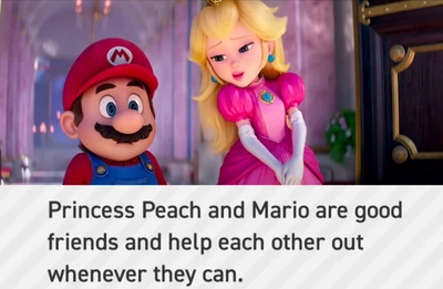 История дружбы персонажей началась ещё в детстве. Марио регулярно спасает принцессу от злодея Боузера, после чего получает в благодарность различные знаки признательности, например, пироги. При этом принцесса Пич поддерживает тёплые отношения не только с Марио, но и с его братом Луиджи, хотя их общение менее активно.