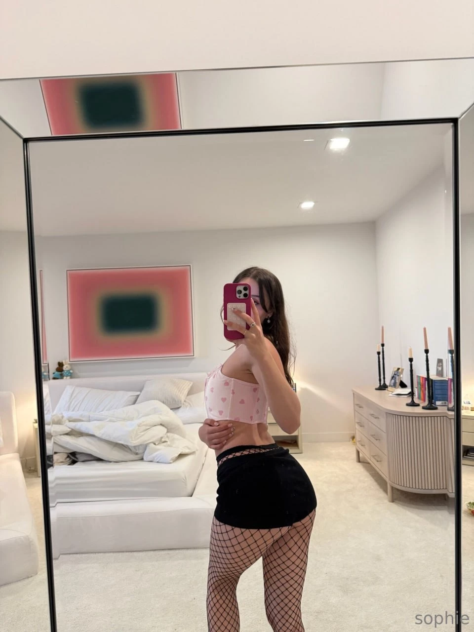 Sophie завораживает милым, но невероятно страстным личиком: большие выразительные голубые глаза полны игривого огня и лукавства, полные губы созданы для sloppy blowjob, ahegao и сладкого teasing, а длинные светлые волосы эротично падают на загорелые плечи, добавляя шарма её youthful и "California beach babe" ауре с лёгким загаром и идеальной кожей. Она — настоящая "golden hour girl": часто снимает на пляже, у бассейна, в бикини или под солнцем, где её тело сияет как золото.