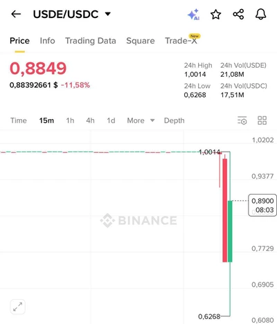 USDe — это синтетический стейблкоин, который поддерживает курс около $1 не за счёт наличия долларов на банковском счёте, а через залог в криптовалютах и хеджирование на фьючерсных рынках. Потеря привязки может вызвать обеспокоенность среди пользователей и инвесторов, так как это ставит под сомнение стабильность и надежность данного актива.