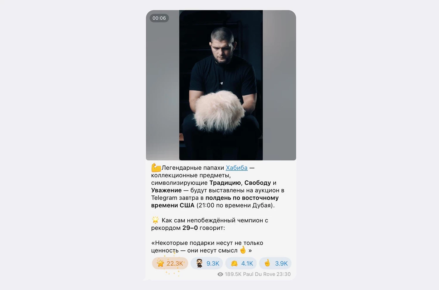 Раздевай ИИ девушек в Telegram ≈ 1.4 млн. юзеровПавел Дуров сообщил, что в сервисе появятся новые подарки, вдохновлённые образом Хабиба Нурмагомедова. Пользователям станет доступна его узнаваемая папаха, которая давно стала символом бойца.